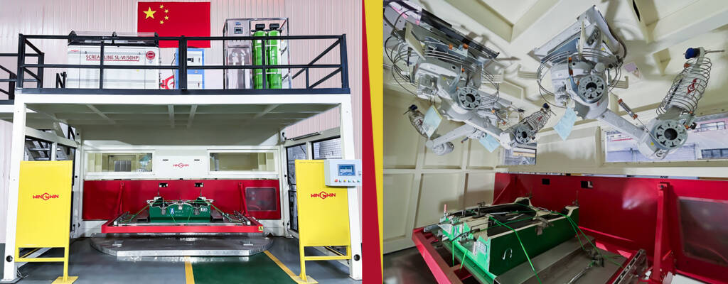 高架ガントリー構造には最大6本のロボットアームを搭載可能