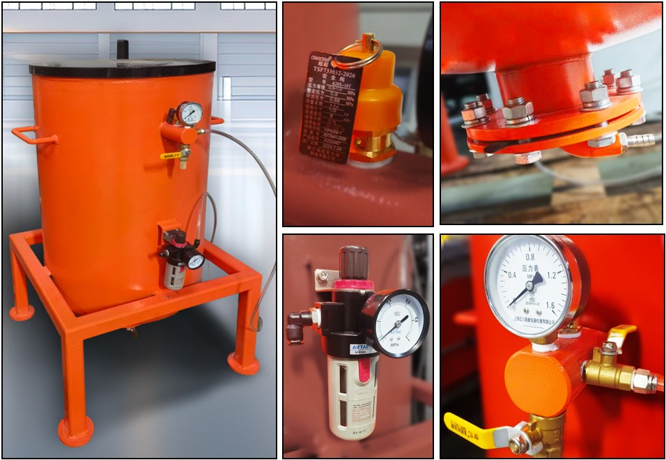 2. 圧力タンクは5mm厚の金属板で作られており、高い空気圧を効果的に支え、安全性と信頼性を確保しています。