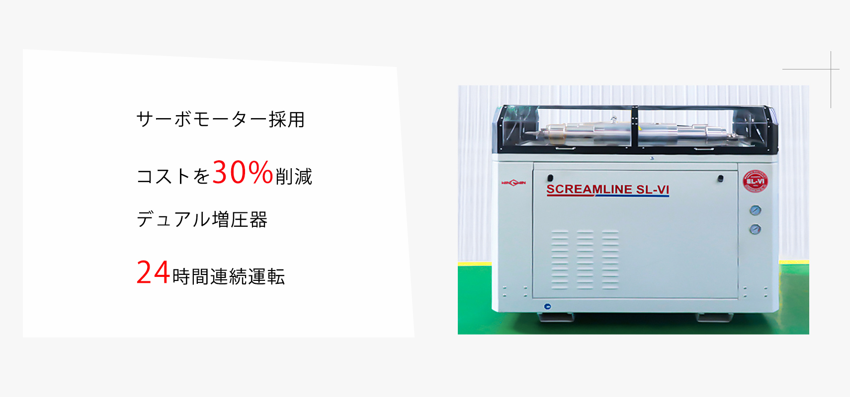 SLVI-50HPは、24時間連続運転が可能で、オプションのデュアルブースターシステムとサーボモーターを採用。